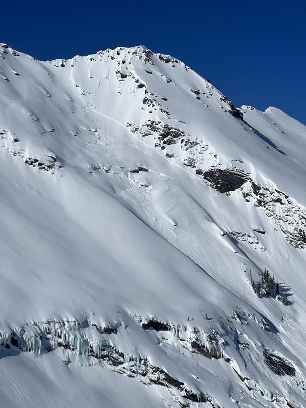 Saw a big avalanche that released on diving board sometime recently. Due to the lack of new snow after the slide and fresh debris, it looked like it happened near the end of the storm, or after it. It ran full scale and looked like it pulled out a small glide avalanche on the way down. Crown looked to be 2-4' from a long distance away.