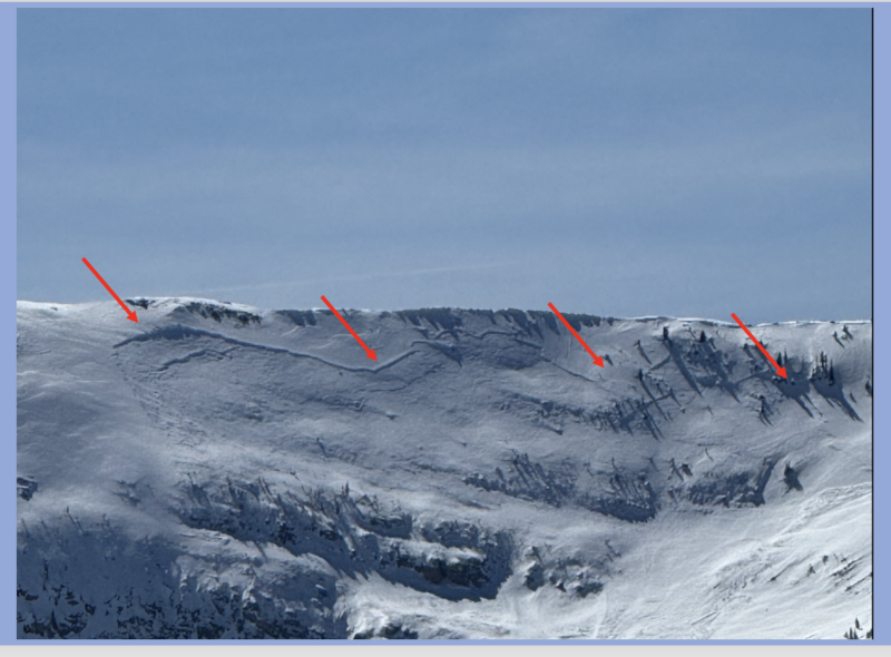 Objects in the mirror are larger than they appear. Got some rudimentary beta on a rather well connected piece of snow, I suspect was corni triggered on the tail end of last weeks storm. NE facing, hanging snow field in the alpine on the backside of Notch Mountain, just east of Mount Watson in the Mirror Lake Highway zone.