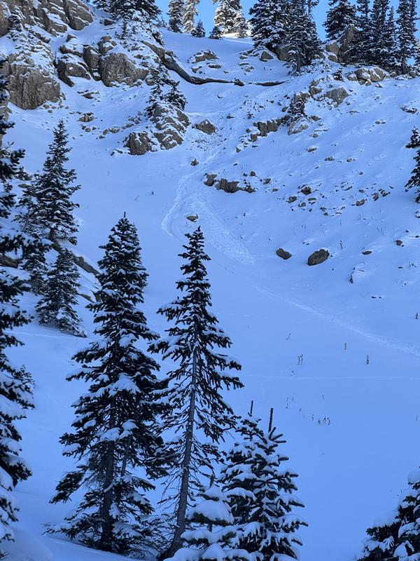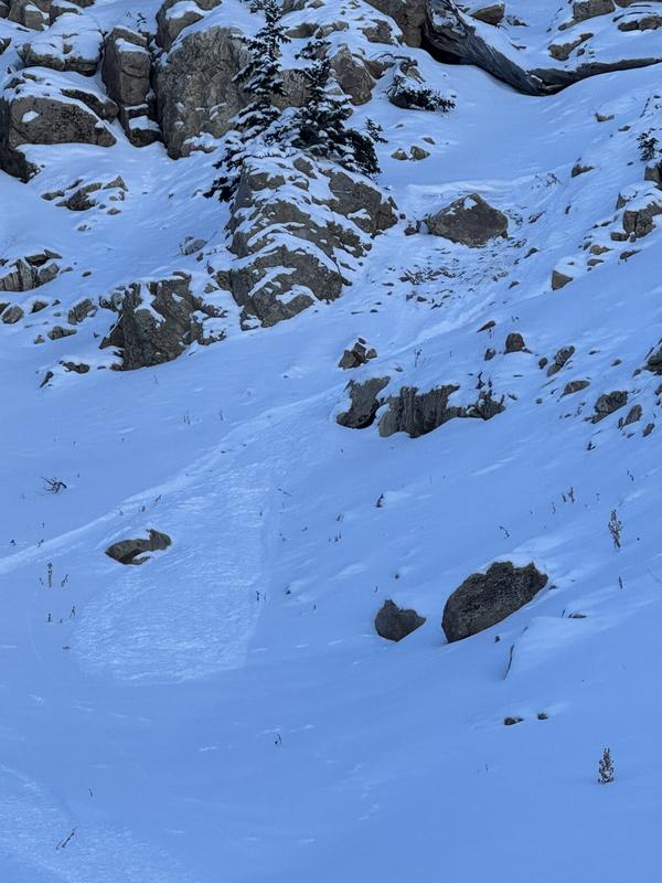 Up skiing at Sunset Peak on 11/22/25 and noticed a snowboarder had triggered a small avalanche on a north facing aspect probably a day or two ago. Base up there is around 40 cm on prob so about 15 inches. Dug a pit and collapse within first 5 taps not very strong base with multiple concerning layers. Very dry weak snow with a with two more compacted icier layers in between the loose dry layers.