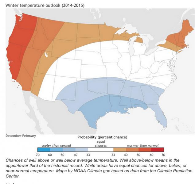 We have a 33-40 percentchance of well abovenormal temperature this winter, which also does not help us much because with global warming, nearly every winter is warmer than normal these days.