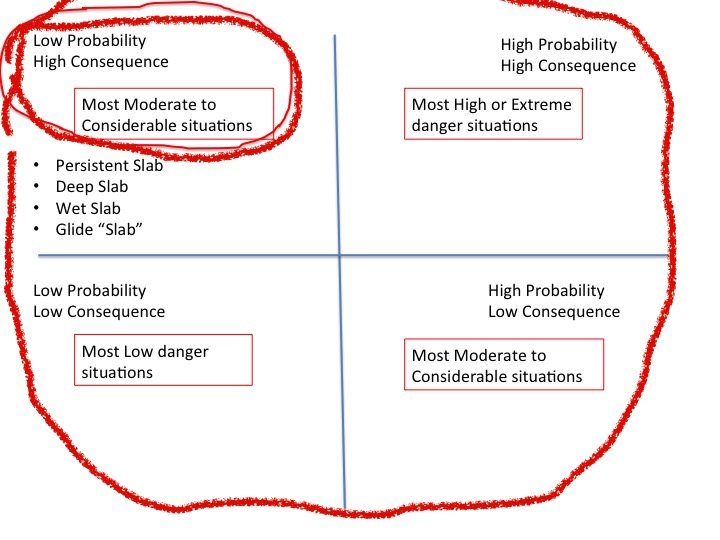 The next morning, I began by showing them a clip of risk reduction researcher Gordon Graham talking about what he calls High Risk, Low Frequency events. You should watch it. 15 minutes.I posted it here a couple of years go. You'll see below how he segregates the different types of incidents and where most of the accidents occur. He's addressing fire and police personnel, but he may as well be addressing snow safety professionals and very experienced backcountry skiers and riders. Follow the figures below to see how this applies.