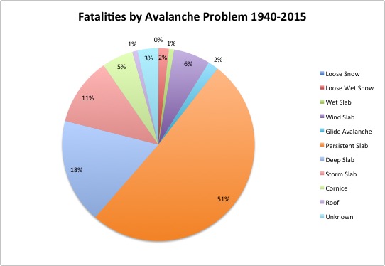 At this point, it's instructive to look at our Utah stats since 1940. What type of avalanches are responsible for our fatalities? As Gordon Graham points out, our incidents occur not during high frequency events, but in low frequency events.