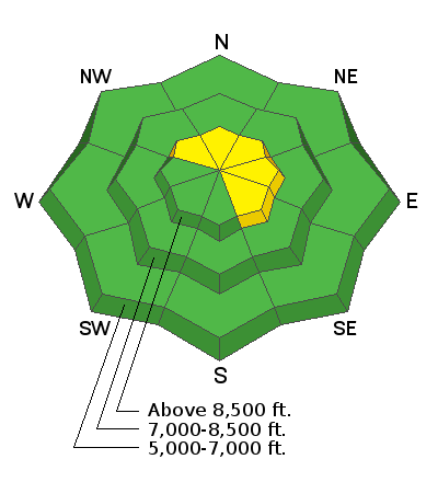 The Tony Grove Snotel at 8400' reports a balmy 35º F and 33"of total snow, containing 87% of average SWE for the date. It's 25º F and southwest winds are humming along in excess of 30 mph this morning at the 9700' CSI Logan Peak weather station, with gusts in the 50s.