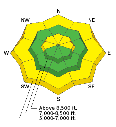 MODERATE: Rain fell on the snow at lower elevations last night, and heightened wet avalanche conditions exist this morning. Snow is falling above about 7000,' and accumulations today will cause rising danger at upper elevations. Human triggered loose and soft slab avalanches of new snow will become increasingly possible. Also, south winds will cause heightened danger of shallow slab avalanches involving wind drifted snow.