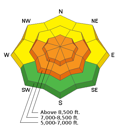 It will be partly sunny today in the mountains again, with high temperatures at 9000' expected to be around 54ºF and 8 to 14 mph south-southwest wind. Scattered rain and snow showers are possible this afternoon, and some thunder is also possible. Rain and snow showers are likely tonight, and thunder is possible. It will be mostly cloudy with low temperatures around 34ºF, and 11 to 16 mph southwest winds. Rain and snow showers will change over to all snow tomorrow afternoon, with a chance of thunder but little accumulation expected. Expect high temperatures around 43ºF and 5 to 15 mph north-northwest wind, veering from the west in the afternoon.