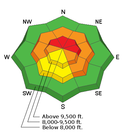 The avalanche danger is HIGH on slopes facing west through north through southeast at the upper elevations. Human-triggered and natural avalanches are certain. Travel in avalanche terrain is NOT recommended, including avalanche runout zones. Being involved in any avalanche will have significant consequences.