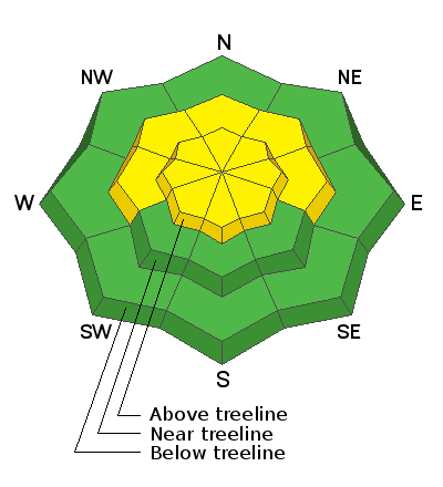 At mid and upper elevations, near and above treeline, the avalanche danger is MODERATE. Human triggered avalanches are POSSIBLE on steep wind drifted slopes, especially those with an easterly component to their aspect.