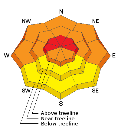 In the wind zone at and above treeline the avalanche danger is HIGH. Deep, dangerous, human triggered avalanches are LIKELY on all steep wind drifted slopes, especially those facing the north half of the compass and particularly those with an easterly component to their aspect.