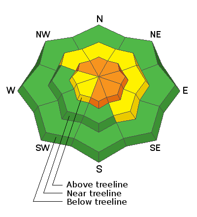 In the wind zone at and above treeline, you'll find CONSIDERABLE avalanche danger. Human triggered avalanches are PROBABLE on all steep wind drifted slopes, especially those facing the north half of the compass and particularly those with an easterly component to their aspect. Any avalanche that breaks into deeper buried weak layers near the ground will result in a scary and very dangerous avalanche that will instantly ruin your day.