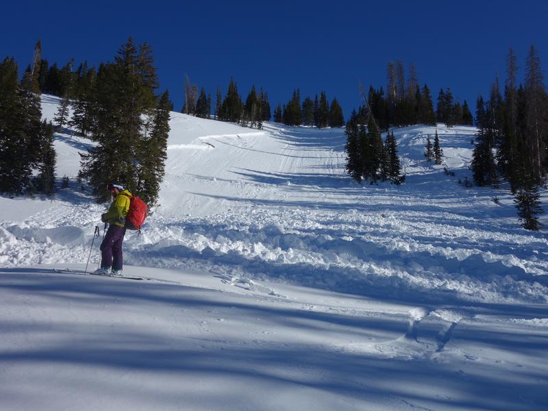 Here's your exit strategy.... lower elevation, low angle terrain offers cold snow and a generally LOW avalanche danger.