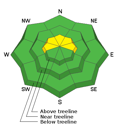For today, while not widespread and making up a small portion of the terrain available to ride, in the wind zone, at and above treeline the avalanche danger is MODERATE. Human triggered avalanches are possible on steep slopes with recent deposits of wind drifted snow. Also... while more the exception than the rule and more pronounced in upper elevation terrain and on slopes with a thin snowpack, an avalanche triggered in steep, rocky terrain has the potential to quickly get out of hand if it breaks into deeper buried weak layers near the ground.