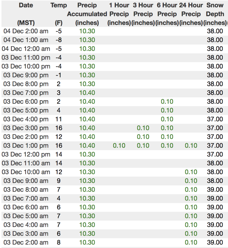 We are working to get the entire Uinta weather network back online. In the meantime, above is 24 hour data from Trail Lake (9945').