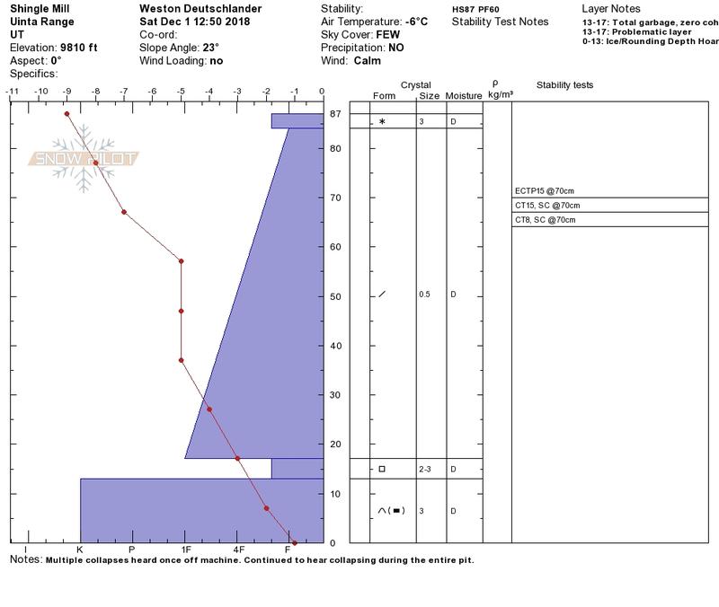 No new avalanche activity to report, but this caught my attention from Ted's ob... "numerous rumbling collapses today was the big red flag along with a poor snow pack structure."