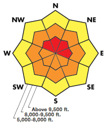 The aspect-elevation rose is a powerful way to understand the general avalanche pattern in a glance by aspect (the direction a slope faces) and elevation.