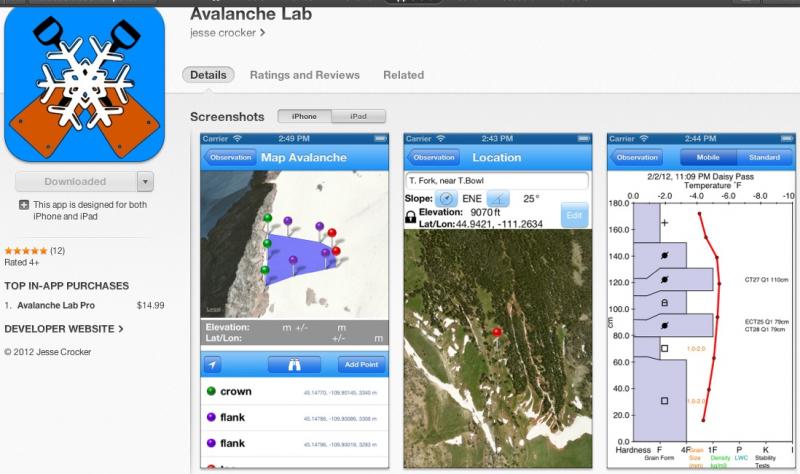 I have been experimenting with both this app and Avy Lab last season and this season to help them get the bugs worked out and they both work very well. I'm not sure if I have a favorite. Eventually, all our forecasters and observer network will be submitting many of their obs with one of these apps.