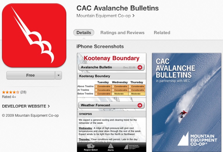 There are a number of new apps that will come out in the next few months including one from Backcountry Access--a company that regularly comes out with very cool and inovative products. As these various apps come out, I will try to update the Apps list on our website, which you can find under Resources. If you come across some good ones, please let me know.