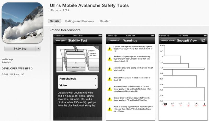 Ullr's Mobile Avalanche Safety Tools - $9.99 from iTunes