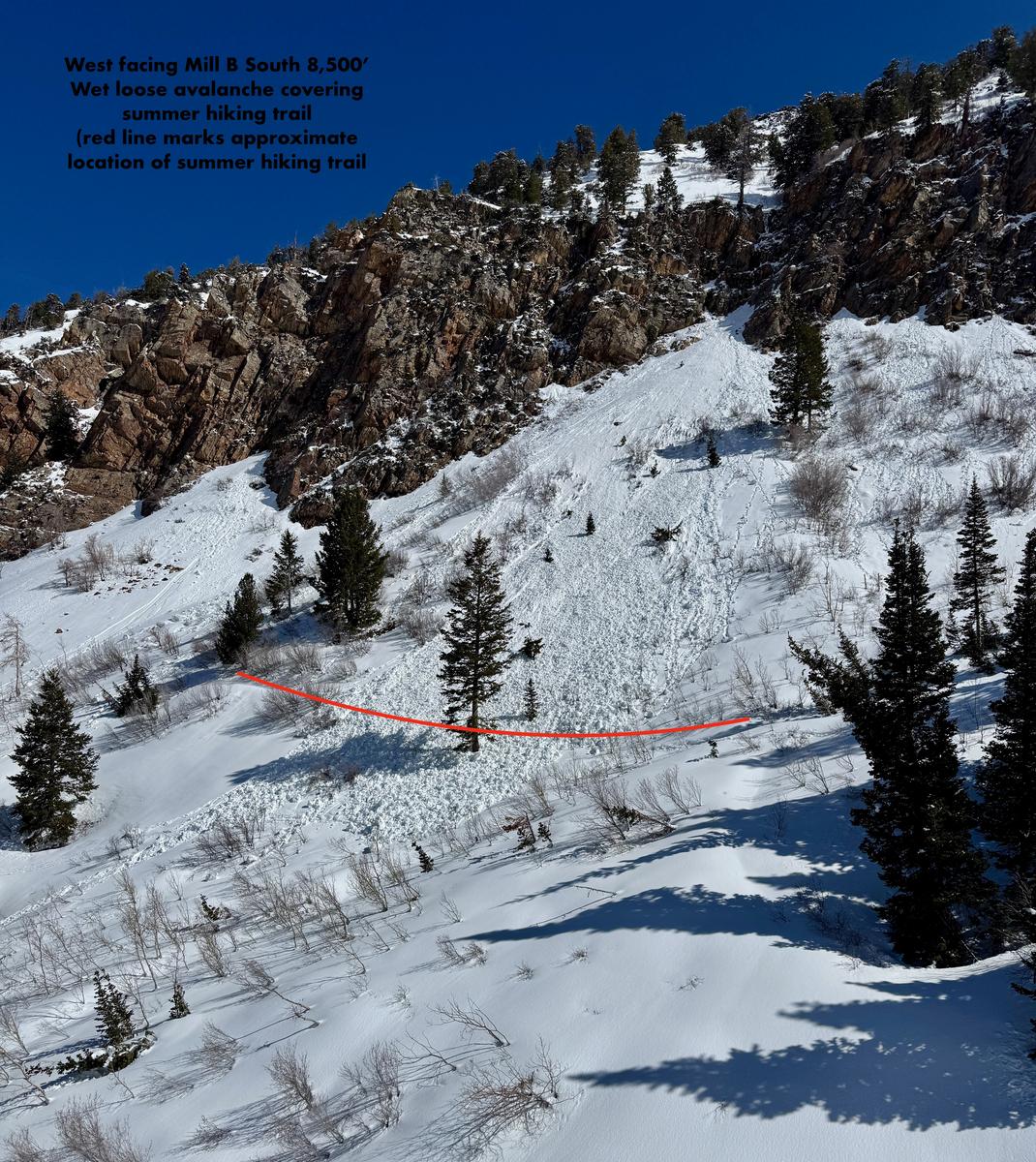 There was evidence of a wet loose avalanche cycle on south,west, and some mid elevation east facing slopes. There was also evidence of old glide avalanches in Mill B and Broads Fork.