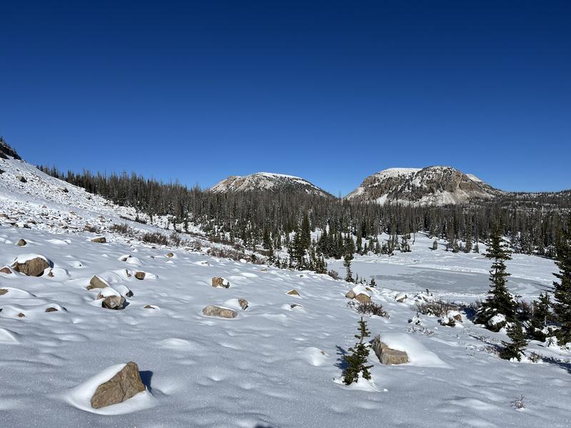 Cold and foggy in Evanston this morning, but in the mountains it was clear and mild. It does not have the feel of late November and winter is slow to get going. The sun felt nice and there was little to no wind today.