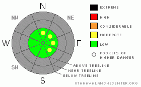 While the avalanche danger is generally LOW, slabs formed along the leeward side of upper elevation ridges are sensitive to the additional weight of a person today. These will be isolated to terrain above treeline with an easterly componant to the aspect. |