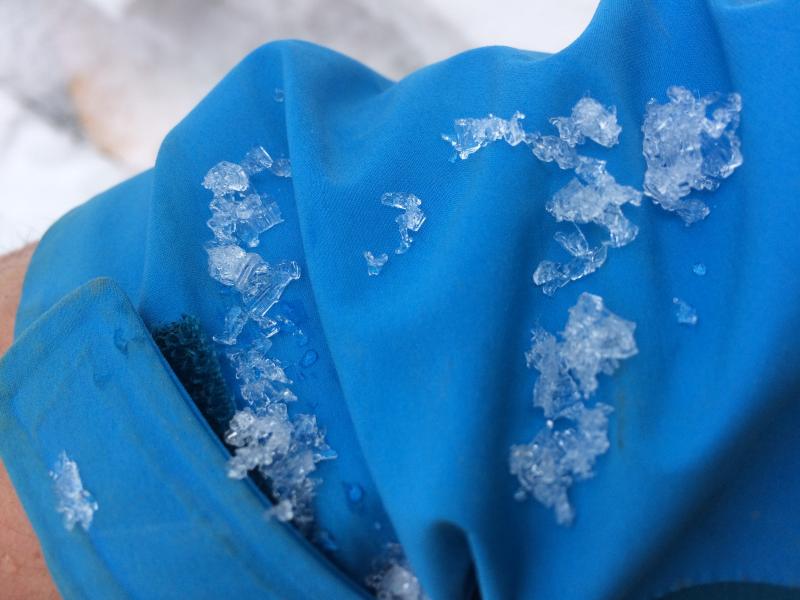 Photo of weak sugary (faceted) snow found yesterday by John Mletschnig in the Mill Creek drainage. This photo is a good example of the weak snow still at the ground in many locations. |
