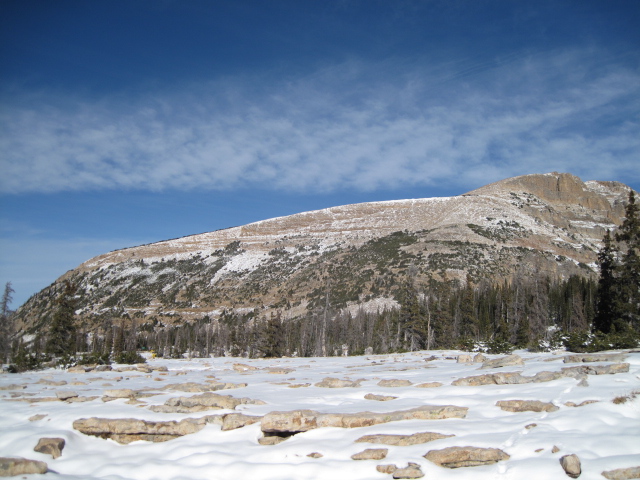 current conditions Clouds thickened late yesterday and we were able to squeeze out a couple inches of new snow overnight. Temperatures are mild and in the low to mid 30's. Along the high peaks southwest winds have mellowed somewhat and are currently blowing in the 20's and 30's. It's not quite winter yet and in general, there's only about 6"-10" of snow on the ground. Ted was out and about Saturday and submitted his trip report along with a nice video overview of current conditions... found here. Real time wind, snow, and temperatures for the Uinta's are found here. Not much snow, even on the high elevation slopes near Bald Mountain Pass. Ted Scroggin photo. |