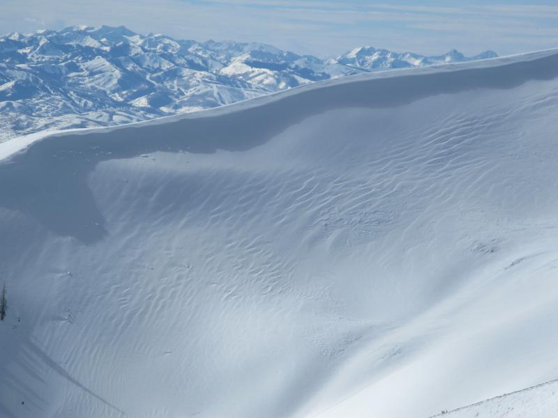 Recent winds blasted upper elevation slopes, creating thick, yet very stubborn wind drifts. Yesterday, I thought these would be reactive to my additional weight and was completely blown away by how quickly the snowpack got shrink-wrapped, welded in place, and seemed to heal overnight. Of course, the Uinta's are a big range and I bet there's still a wind drift or two lurking on the leeward side of mid and upper elevation ridges and around terrain features like chutes and gullies, that'll react to our addtional weight. Guilty until proven otherwise, I'm still avoiding fat, rounded looking pieces of snow, especially if they feel or sound hollow like a drum. |