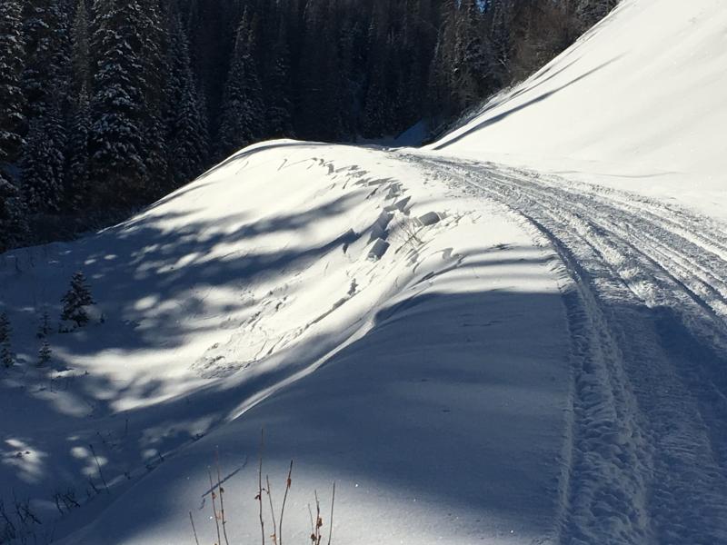 recent activity It didn't take long to know avalanche conditions were dicey. This slide on a road bank was clearly visible just a few minutes into our ride from the Nobletts Trailhead
