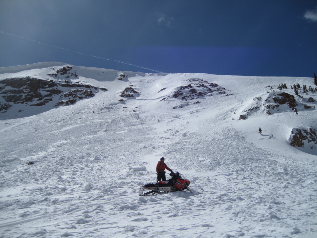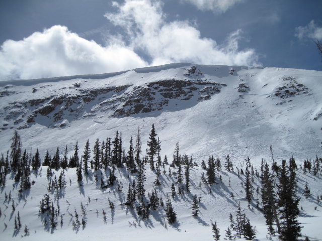 Deep slabs- They're tricky, they're dangerous, they're unpredictable, and now this notoriously deceptive avalanche dragon came alive late last week on the eastern front. The good news is... the weekend cold snap welded the snowpack in place and most of these instabilities appear to be dormant for the moment. The bad news is... our usual observations regarding snow stability often give misleading, green light feedback. That means tracks on the slope, cornice drops, or slope cuts are unreliable methods of testing the slope. In fact, this strong, cohesive slab often allows us to get well out onto the slope before it fails and now the snow is breaking to the ground taking out the entire seasons snowpack. So how do you manage an unmanageable avalanche problem? Well... we simply avoid it. Steep, rock, mid and upper elevation terrain facing the north half of the compass are prime suspects as are slopes that already avalanched this season, and terrain that has remained thin all year. So here's the exit strategy... if you're looking for soft snow and safe riding, simply tone down your slope angles and avoid terrain with steep slopes hanging above you. |